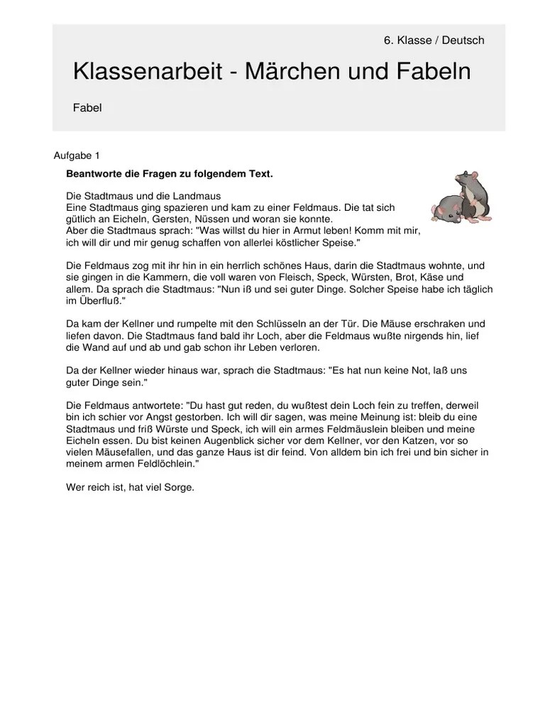 Kostenlose arbeitsblätter und übungen für deutsch in der 3. Fabeln im unterricht in klasse 5 und klasse 6. Klicke links in der navigation deine wunschübungen. Subjekt, prädikat, dativobjekt, akkusativobjekt und alle satzglieder. Deutsch, mathematik und englisch übungen klasse 4, klasse 5 klasse 6, klasse 7, klasse 8, klasse 9, klasse 10.